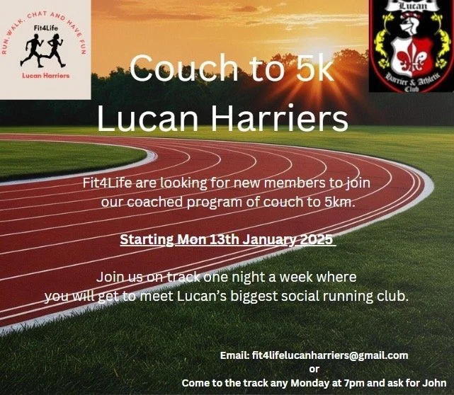 Lucan Harriers Fit4Life is aimed at men and women who would like to get fit in a social and fun environment. You can be a complete beginner or someone returning to exercise. You also have the option of progressing to the Senior Ladies/Men's groups or trying out some track and field.